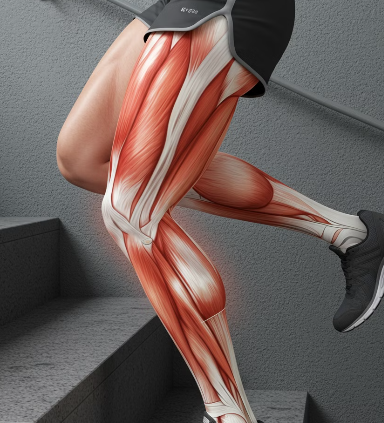 계단을 오르내리는 동작은 대퇴사두근, 햄스트링, 종아리 근육 등 하체 전반의 근육을 강화시킵니다.